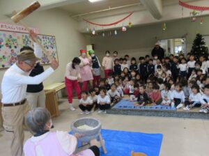 お餅つき@光陽会しんひのおだいエントランス こどもたちのようす 2025.12.152025.12.20 師走12月の恒例園行事、お餅つきをしました! 杵(きね)と臼(うす)に触れてみて、その重さや大きさを体感するのもとても貴重な経験です。みんな興味津々、おもちができるまでの様子を観察していました。